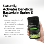 CoolBIO contains highly concentrated cold water natural bacteria designed to accelerate the decomposition of leaves, twigs, muck and other sediment during the fall and winter months while replenishing winter bacteria loss during the spring.